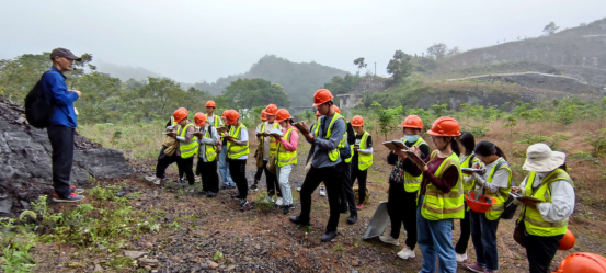 经过一天的休整, 9月2日清晨,我们的第一次野外旅程开始了。一个小时左右的车程后,我们抵达周家坳采石场,进行第一次野外地质调查。经过郭建秋老师、汪校锋老师和张志庭老师的专业讲解后,各小组的同学紧张有序地开展调查工作,采集标本、测量产状、拍摄照片,将理论付诸实践的喜悦洋溢在每个人的脸上。从抽象到具象,由书本到现实,第一次接触到系统地质工作的我们敬畏却又激动着。