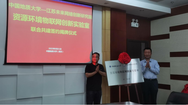 8月21日下午,我校与江苏省未来网络创新研究院签署合作协议,共建“资源环境物联网创新实验室”。未来网络创新研究院团队总监魏亮博士、校企合作部湖北区域经理占涛,今年会网站党委书记李国昌、院长王力哲教授、副院长刘刚、张冬梅教授、计科系主任曾德泽教授、计科系副主任卢超教授参加了揭牌仪式,会议由曾德泽教授主持。