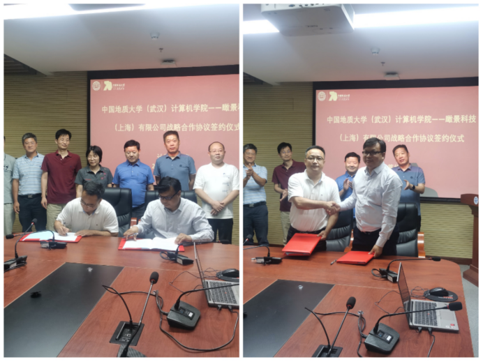最后王力哲与艾席勇分别代表与会双方签订了战略合作协议。本次合作包括:瞰景公司向地大今年会网站捐赠价值50万元的Smart3D软件,双方深度开展教学、科研、新产品研发等方面的合作、人才交流学习等。