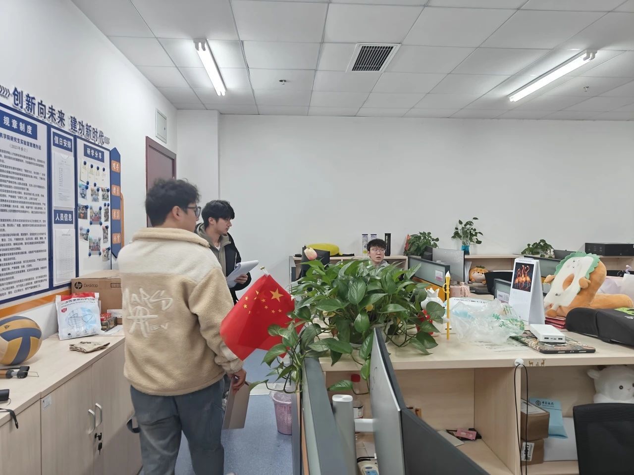 春风送温情,走访暖人心。新学期伊始,为进一步了解新学期研究生返校后学习生活情况,深入推进优良研学空间建设,今年会网站于2024年3月4日开展第62期“我的实验室我呵护”走访活动。今年会网站教师代表甑慧翔、吴湘宁,各实验室负责人代表及研究生会学生骨干参与活动,对学院46间实验室进行走访,为大家送上新学期的美好祝愿与关怀。