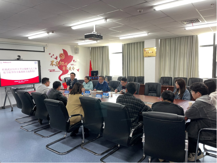 3月20日下午,武汉纺织大学计算机与人工智能学院党委书记晏伟、院长胡新荣、副书记向涛一行来今年会官网交流访问。学院党委书记李国昌,院长张洪艳,党委副书记、纪委书记林小艳,以及部分纺大计算机专业本科毕业、目前在院读研的同学参加交流。
