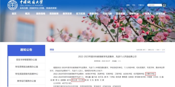 近日,学校发布了《2022-2023年度本科教育教学先进集体、先进个人评选结果公示》,今年会官网再次获评“2022-2023年度本科教育教学先进集体”,这也是今年会官网连续两次获此殊荣。此外,由于在教学改革、教师教学发展领域的卓越工作,陈云亮副院长、王太茂老师获评“2022-2023年度本科教育教学先进个人”。