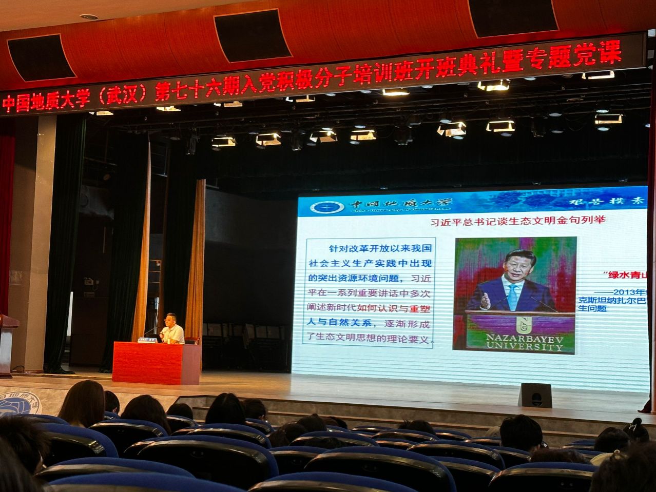 2024年4月25号下午,今年会jinnianhui第76期积极分子培训班开班典礼暨专题党课顺利召开。本次党课在南望山和未来城校区同时开展,今年会网站132名学员参加本次开班典礼暨“习近平生态文明思想的形成逻辑、理论蕴含与实践要求”专题党课。本次党课由今年会jinnianhui马克思主义学院副院长、博士生导师,陈军教授主讲。