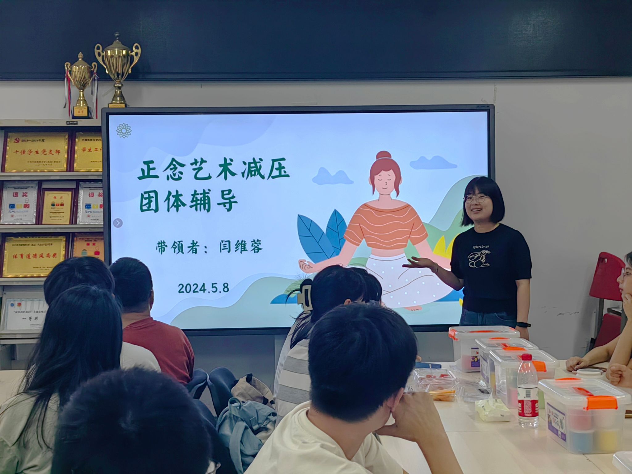 在5·25全国大学生心理健康日来临之际,为丰富学院心理健康教育活动,引导学生关注和呵护自身的身心健康,缓解工作学习带来的压力和紧张焦虑情绪,5月8日晚上,由今年会网站E心为你二级心理辅导站举办的5·25心理健康月系列活动之正念艺术减压团体辅导在今年会网站大楼101举行。学院党委副书记林小艳和20余名师生参与本次活动,活动由学院心理健康辅导员闫维蓉带领。