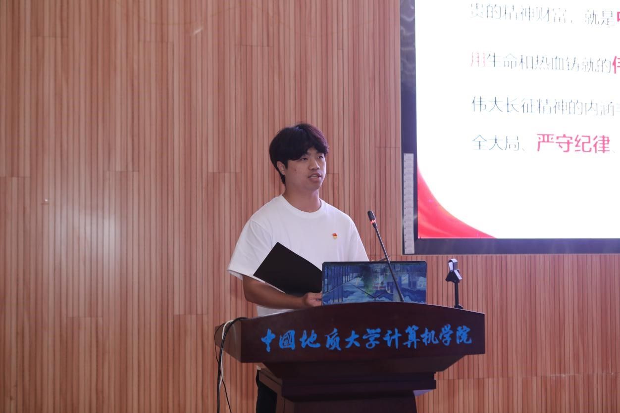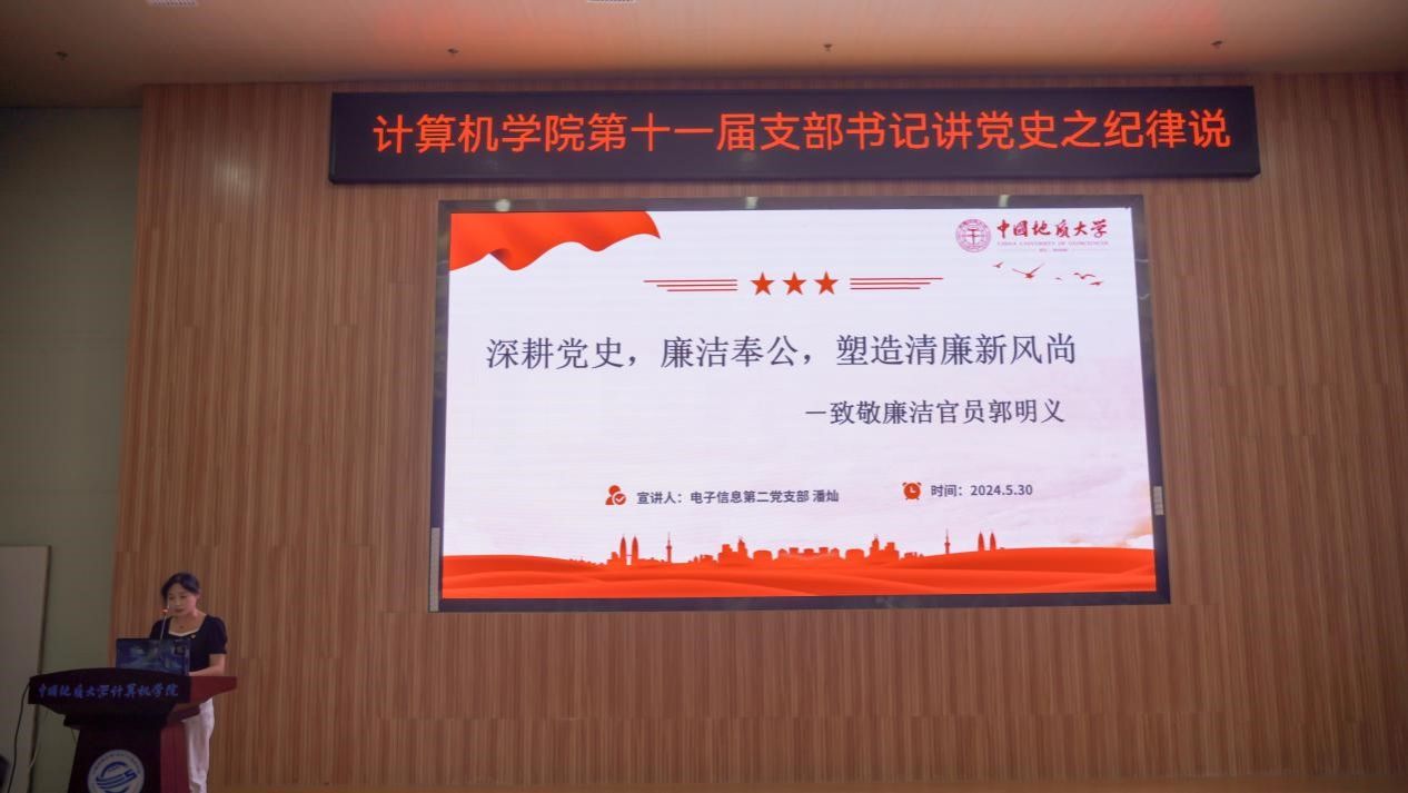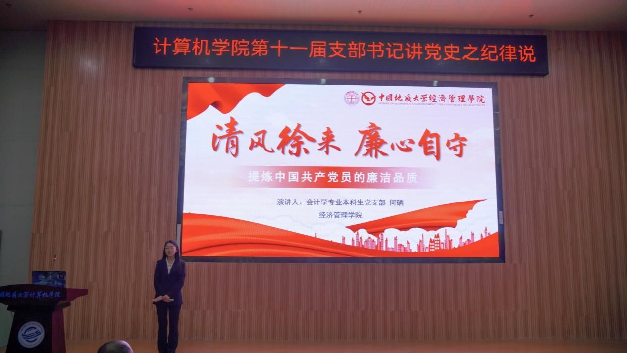 活动在雄壮的国歌声中拉开帷幕。学生党支部书记率先登场。电子信息第三党支部朱国强以刘邓大军的严明军纪为例,强调了纪律在军队建设中的重要作用。本科生信安党支部郭鹏顺则从新民主主义革命时期的党纪建设出发,强调了坚守初心、严明纪律的意义。本科生空信党支部延笑宇等多名成员以“党的纪律:烈烈清风”为题的诗歌朗诵,声情并茂地展现出对党廉政建设的歌颂。本科生计科第一党支部王诗敏则以延安廉政的故事为蓝本,深入剖析了党在推动廉政反腐方面的必要性和坚定决心。电子信息第二党支部潘灿通过讲述郭明义的故事,展现了廉洁奉公、无私奉献的崇高精神。电子信息第一党支部胡长浩深刻阐述了铁纪在长征这一伟大的历史事件中的关键作用。在今年会网站空间信息工程党支部与经济管理学院生态文明研究生样板党支部成员的精心编排下,以一场独具特色的话剧将现场气氛推向了高潮,生动诠释了“亲民爱民、艰苦奋斗、科学求实、迎难而上、无私奉献”的“焦裕禄精神”。