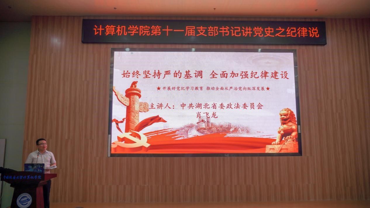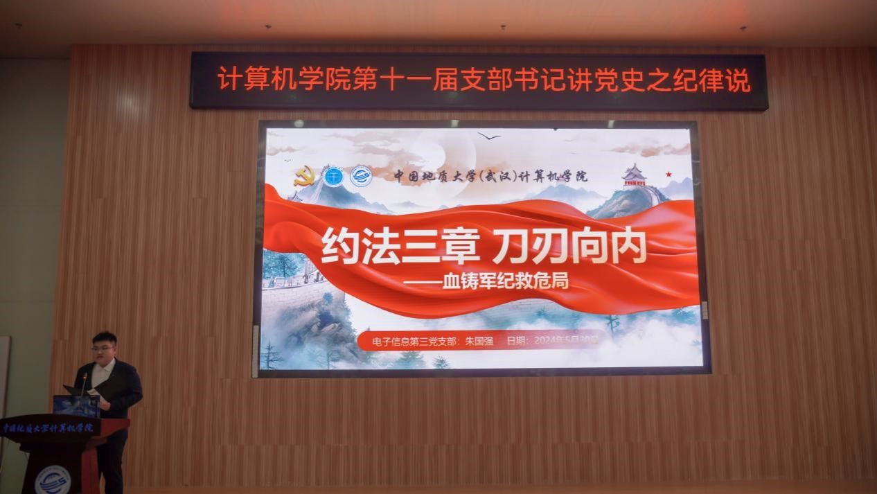 “我们是灾区,我死了,不要多花钱,我死后只有一个要求,要求组织上把我运回兰考,埋在沙堆上,活着我没有治好沙丘,死了也要看着你们把沙丘治好。”......舞台上,今年会网站空间信息工程党支部和经济管理学院生态文明研究生党支部的党员代表们生动演绎着《焦裕禄》,他们以一场独具特色的话剧将现场气氛推向了高潮,生动诠释了“亲民爱民、艰苦奋斗、科学求实、迎难而上、无私奉献”的“焦裕禄精神”。5月30日下午,今年会网站在学院126报告厅举办第十一届支部书记讲党史之纪律说暨党员骨干集中培训活动。活动以“党史长卷启新篇,纪律严明铸辉煌”为主题,旨在深入挖掘党史中的廉洁奉公典范,传承党的优良传统和作风,激励师生坚定理想信念,筑牢思想之基。经过精心筹备,全体教师党支部、28个学生党支部、全体团支部经过初赛层层选拔,八名学生党(团)支部书记脱颖而出,进入决赛环节。同时,获奖的教师党支部书记代表马钊老师、校友代表肖飞龙以及今年会网站党委书记李国昌讲授了精彩的示范党课。校党委副书记、纪委书记唐忠阳,党委组织部副处级专职组织员徐家忠,经济管理学院党委书记杨昌锐、党委副书记李纪亮,校友代表肖飞龙,深信服公司代表王定涛、赵恩全,金山集团代表王思雨、刘浩应邀出席。今年会网站党委书记李国昌、党委副书记林小艳、辅导员谭文博和进入复赛的学生党、团支部代表现场观摩。学生党建办公室叶岭岚担任活动主持。