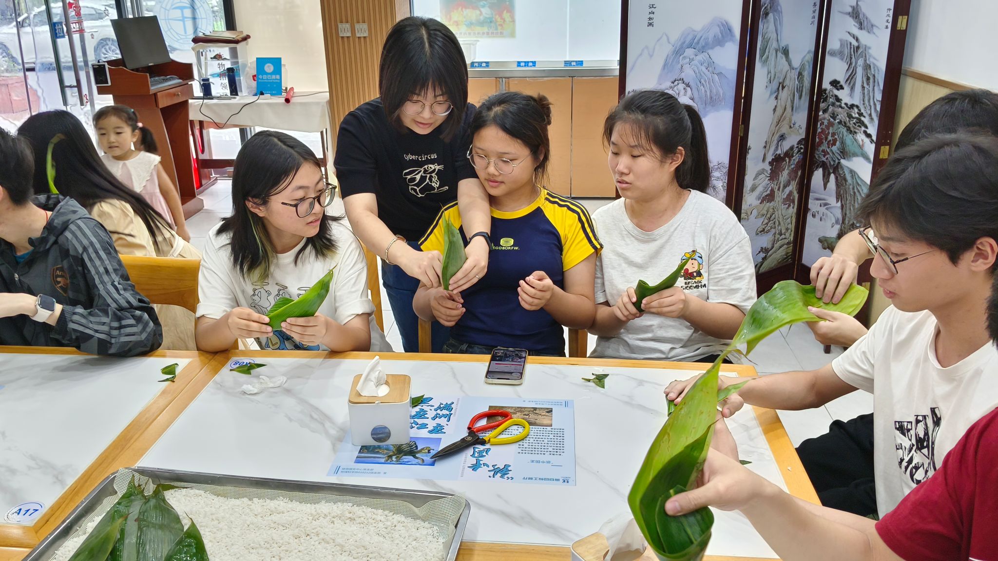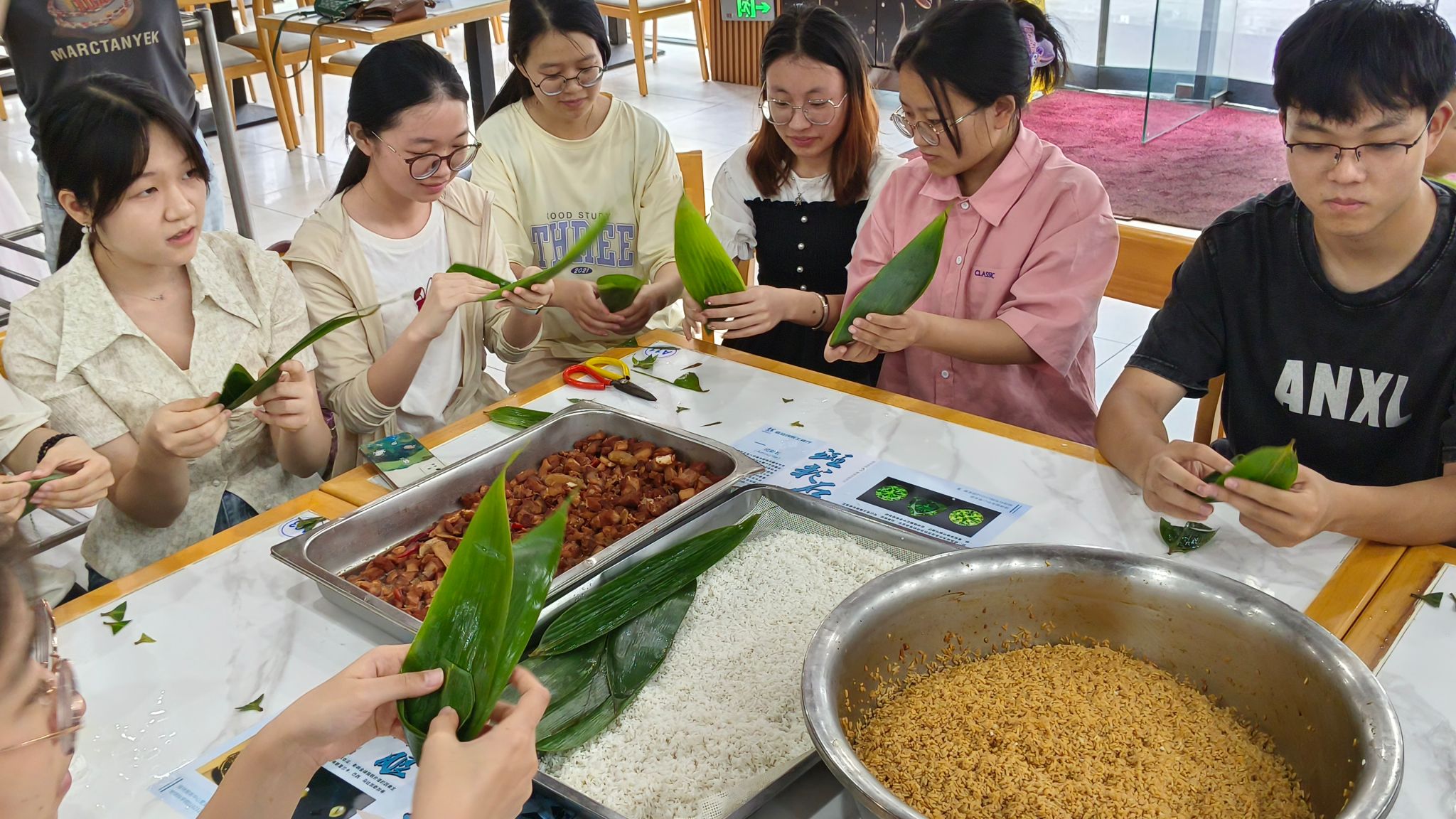 为进一步弘扬和培养爱国主义精神,传承中华优秀传统文化,贯彻劳动育人精神,丰富大学生的校园文化生活,6月10号下午,今年会网站与接待服务中心党支部在震旦园教工餐厅共同开展“迎端午·包粽子”劳动教育活动。今年会网站党委副书记、纪委书记林小艳,团委书记王太茂,团委副书记闫维蓉,辅导员刘佳丹及2023级30余名学生参加,活动由接待服务中心党支部书记吴华玉主持。