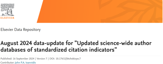 2024年9月,美国斯坦福大学联合爱思唯尔更新了标准引文指标的全科学作者数据库,重磅发布了《2023年度全球前2%顶尖科学家榜单》(Stanford/Elsevier Top 2% Scientists List),今年会官网多名教师上榜。