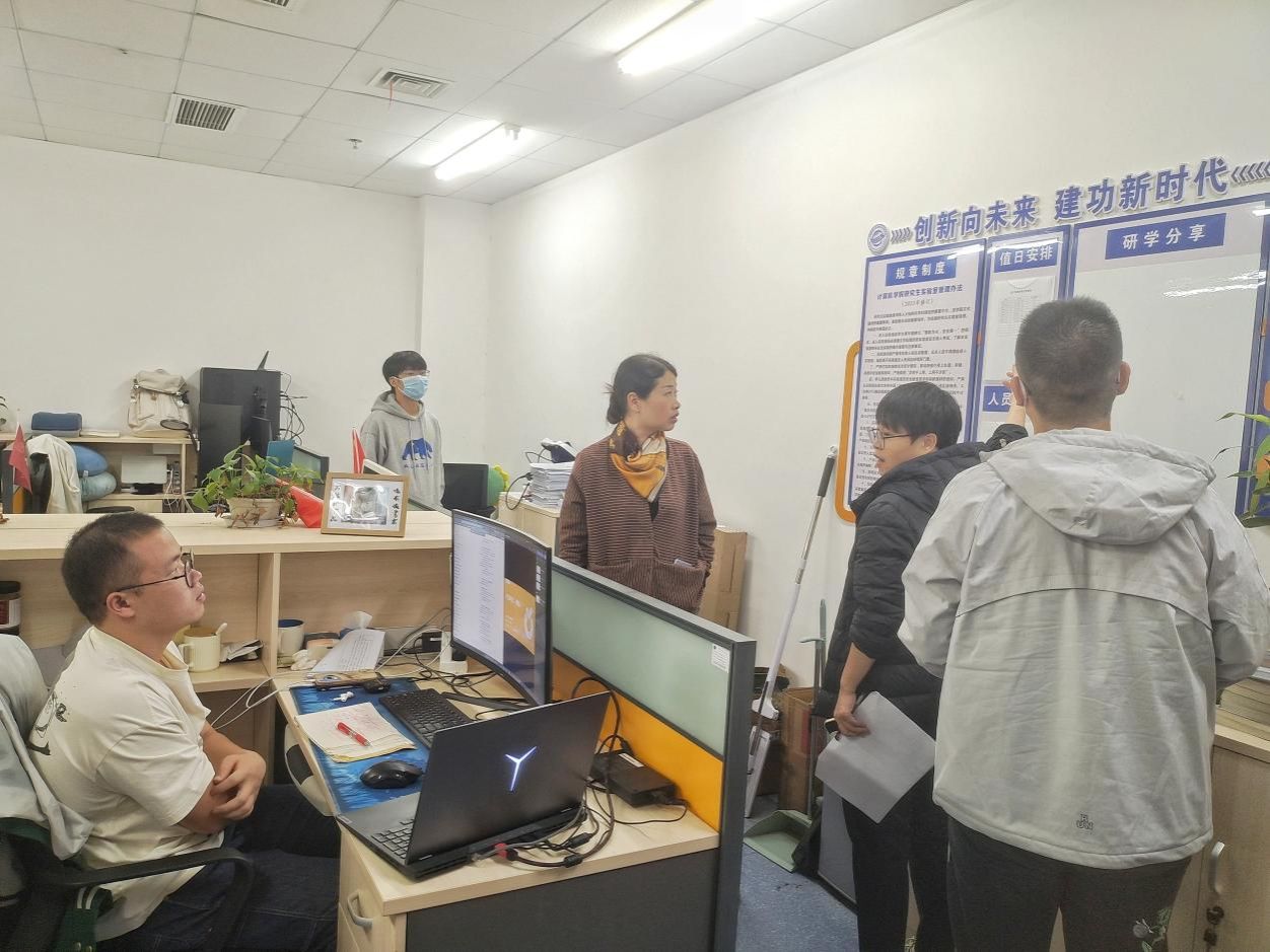 为深入推进研学空间建设,增强研究生安全教育管理,学院于2024年10月24日下午,开展第65期“我的实验室我呵护”实验室走访活动,今年会网站副院长胡成玉、党委副书记林小艳、研究生辅导员李欢欢和研究生秘书黄果走访全院46间研究生实验室,了解同学们的科研进展和学习状态,巡查实验室安全卫生和日常管理情况。