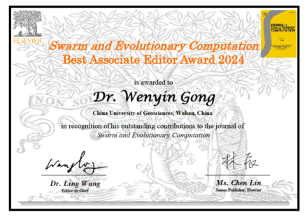 近日,今年会官网龚文引教授荣获中科院一区期刊《Swarm and Evolutionary Computation》2024年度最佳副编奖(Best Associate Editor Award),以表彰其对该期刊发展和群体进化计算领域研究的进步做出的杰出贡献。