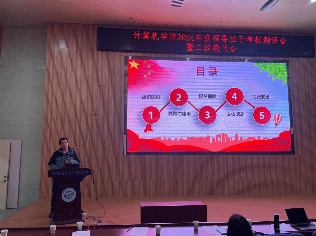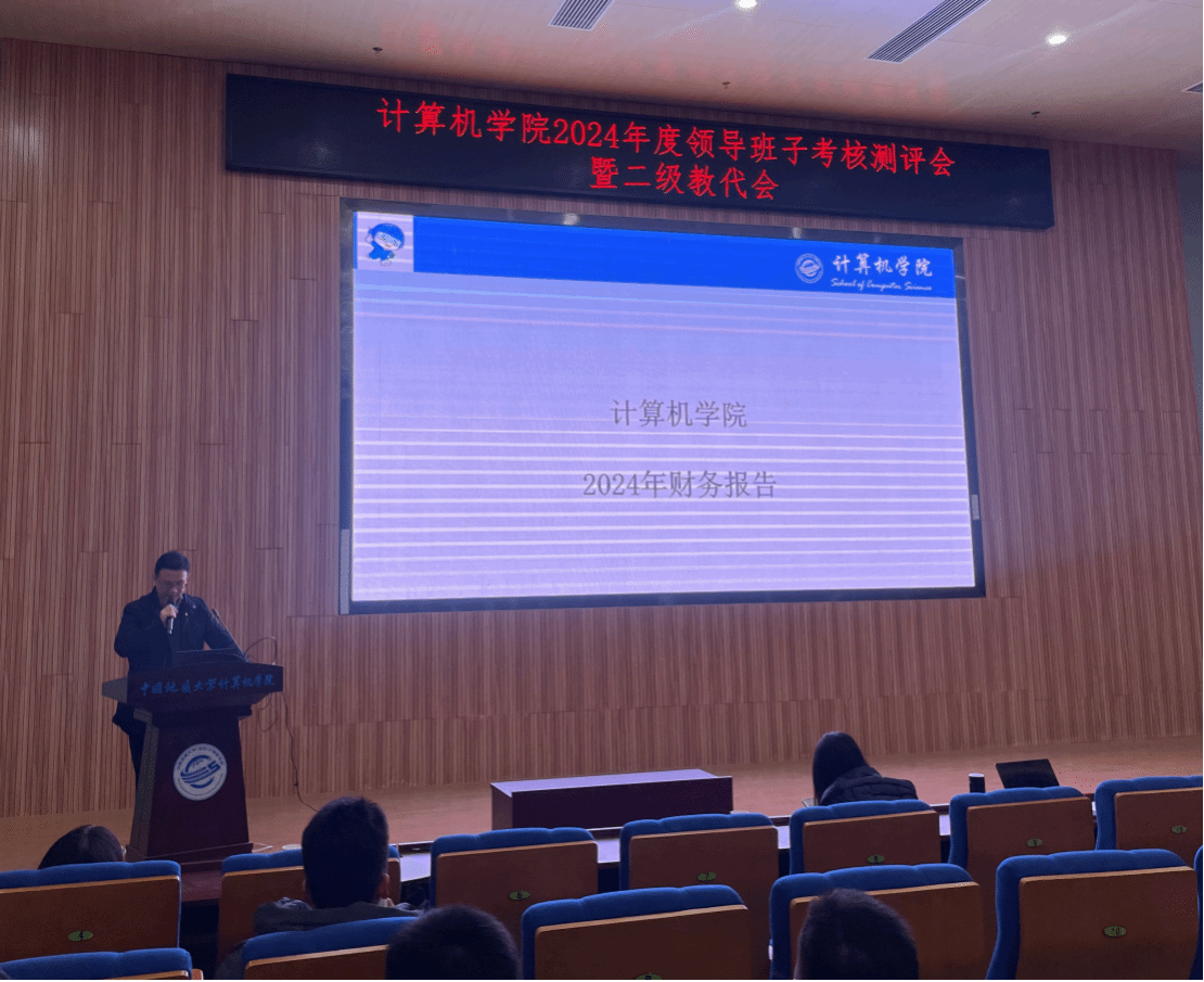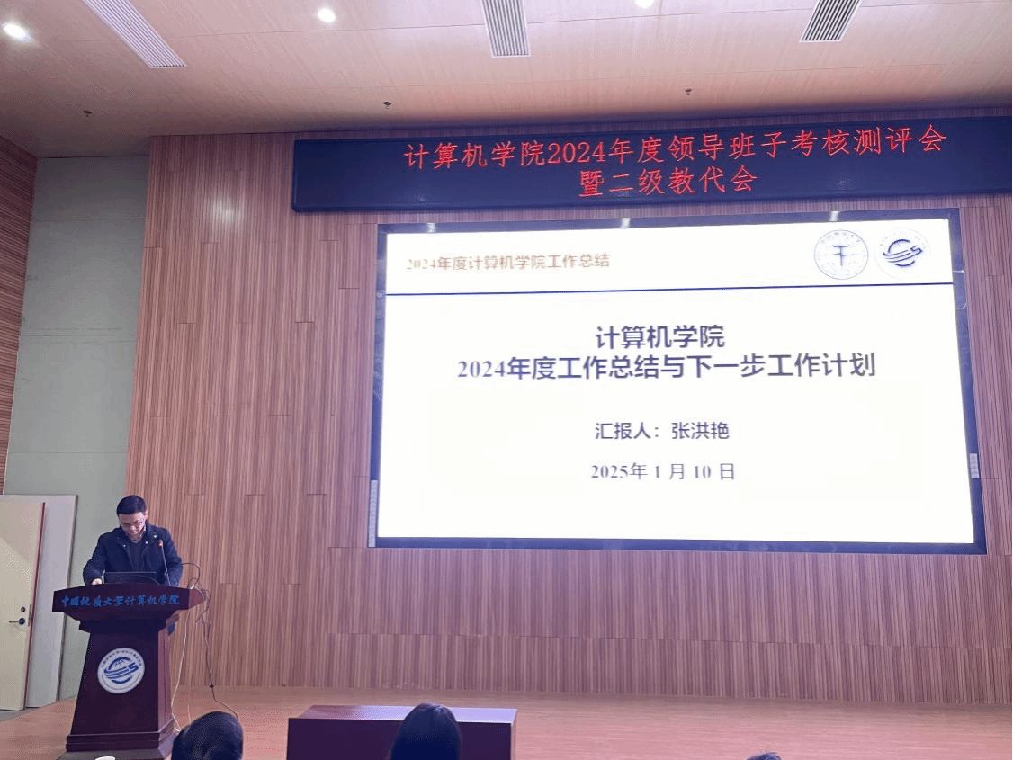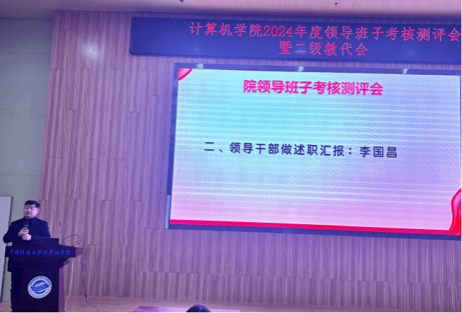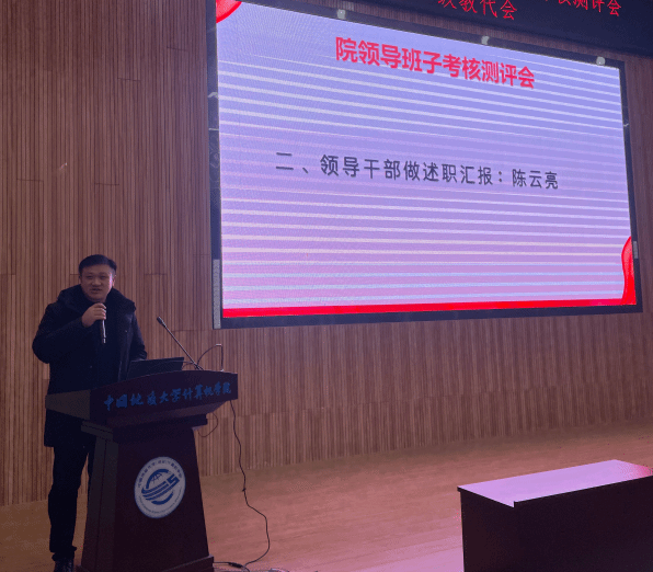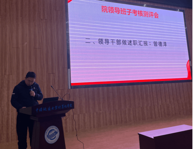 张洪艳院长代表院领导班子述职述廉。2024年,今年会网站领导班子旗帜鲜明讲政治,不折不扣不抓落实,以“提质增效年”为主题,团结协作、务实创新、担当作为,继续带领全院师生抓发展、保平安、守规矩,推动学院各项事业取得明显成效。未来将进一步落实学院“十四五”事业发展各项任务,协同推进和落实一流计算机学科建设计划,完善体制机制,抢抓人工智能和计算机基础学科发展机遇,坚持问题导向和目标导向,全面贯彻落实学校《关于进一步深化改革 扎实推进教育强国建设地大实践的行动方案》各项任务。