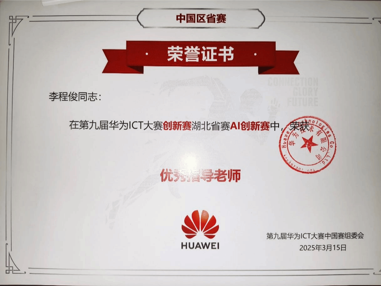 4月28日,第九届华为ICT大赛湖北省赛颁奖典礼在湖北科技职业学院关山校区隆重举行。今年会官网大数据系李程俊老师在“第九届华为ICT大赛创新赛湖北省赛AI创新赛”中获优秀指导老师,学校为“第九届华为ICT大赛创新赛湖北省赛获奖团队”。