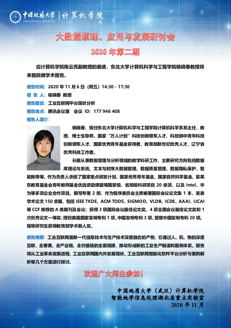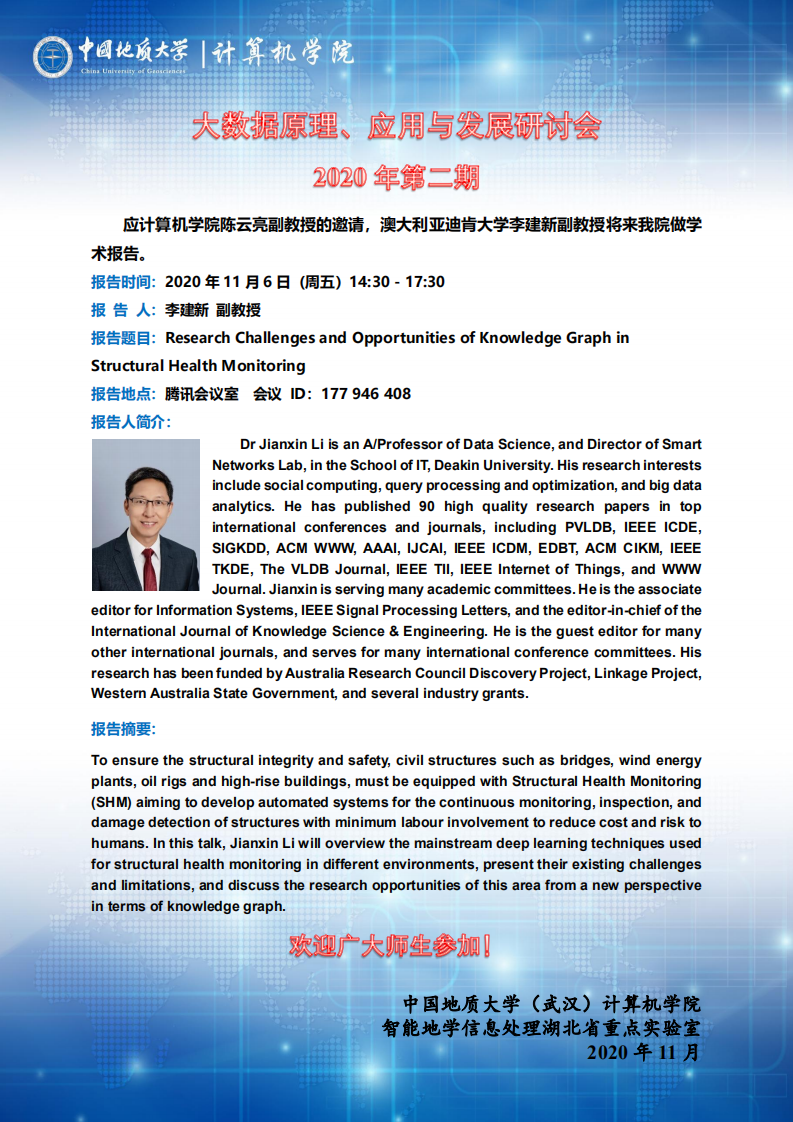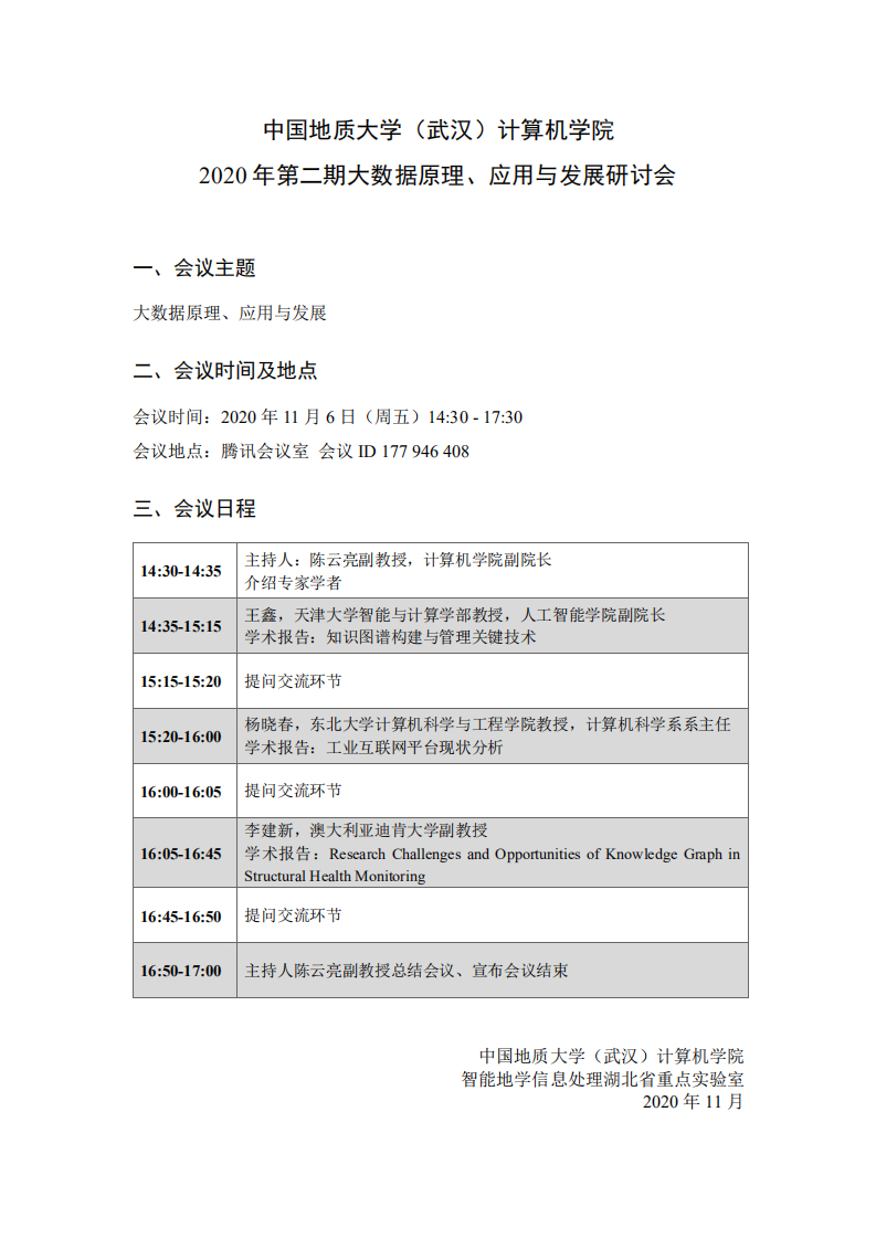 学术会议——2020年第二期大数据原理、应用与发展研讨会