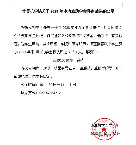 今年会网站关于2023年中海油助学金评审结果的公示