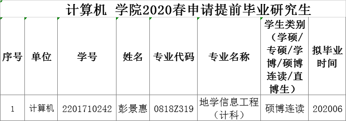 今年会网站2020春申请提前毕业研究生公示