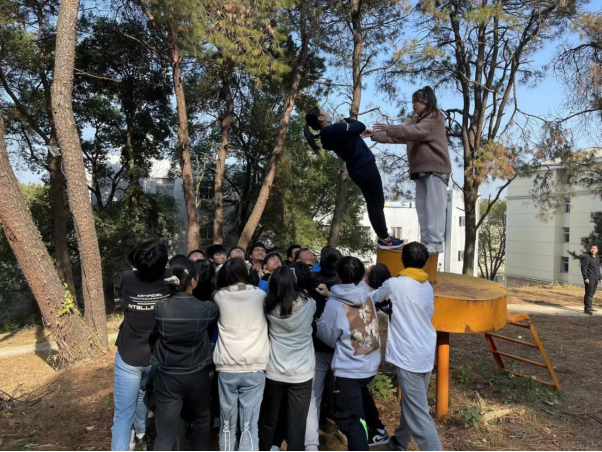 一面4.2米的高墙,没有任何求生工具并要在规定时间内完成百人逃生任务,在绝境面前你会如何做。同学们在前期培养责任感与信任感的基础上,由个体组建为真正的团体。在整个过程中,大家为了团队目标,展现出勇于牺牲和甘愿奉献的精神,最终同学们在短时间内圆满成功,打破了往届的记录,展现了21级同学们的良好风貌。