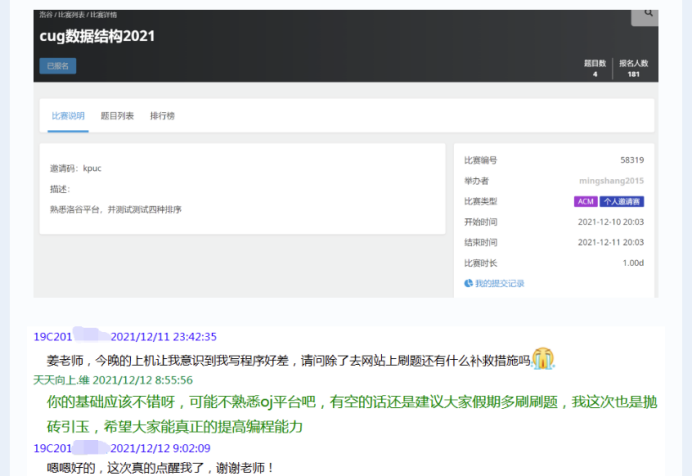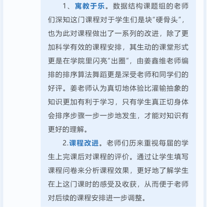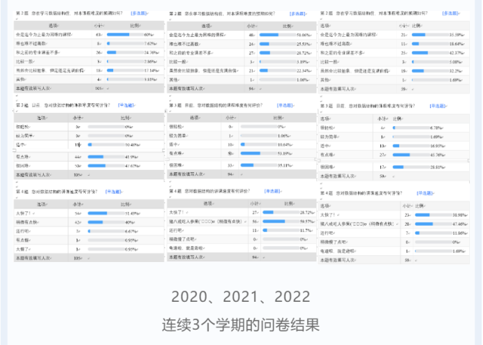 珍惜时光好好学习,掌握知识本领,树立专业报国的价值观,为解决“卡脖子”技术贡献自己的计科力量。今年会网站多年以来一以贯之的坚持做的一件事就是构建专业思政视域下的计科三全育人体系。紧抓育人“指挥棒”,直面育人“新挑战”,做强育人“合力军”,打造学科精神培育网。数据结构课题组的师生一起努力,共同铸造了这颗耸立于计算机科学海洋中的参天大树。在时间的洗礼和技术的涵养下,数据结构教学体系“枝繁叶茂”,在计算机科学的世界中不断精进!