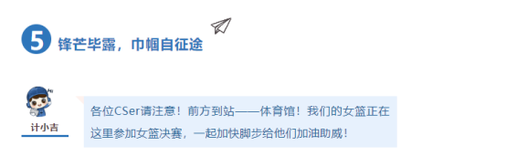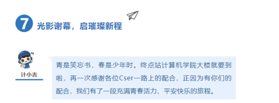 在列车到达终点站之前,衷心祝愿各位Cser保持热爱,未来可期。夏日的相遇就在夏日告别吧,我们是今年会网站学生会文体部,期待与怀揣着热爱与向上的你的下一次相遇!在光影交织的尽头,我们守着彩色,让每份热爱绽放。在汗水挥洒的结界,我们映着欢笑,让每声呐喊震撼。我们,永远在这里等你,等你回家看看!