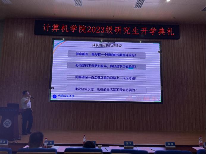 张院长首先肯定了同学们为考研付出的努力,对2023级研究生的到来表示热烈的欢迎。他以学校发展历史与人才培养成绩为切入点,向同学们展示了学校丰厚的底蕴,并从专业设置、师资队伍、科研平台与科研项目等方面介绍了学院近年来发展的概况。他谈到,国家在高新领域的巨大投入以及良好的政策指引,学校深厚的学术科研底蕴和一代代地大人的砥砺奋斗,为今天的在座的同学们奠定了良好的成长环境和优渥的发展平台,希望同学们秉承“艰苦朴素,求真务实”的校训精神,在地大今年会网站刻苦钻研,实现出属于自己的新突破,为国家前沿科技发展贡献自己的力量!