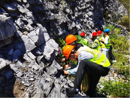 观察、讨论、描述、记录、收集、拍照,同学们拿上地质三大件,运用传统的野外地质研究方法,动眼、动口、动手,用放大镜观察岩石、用罗盘测量产状,集思广益、将今论古。