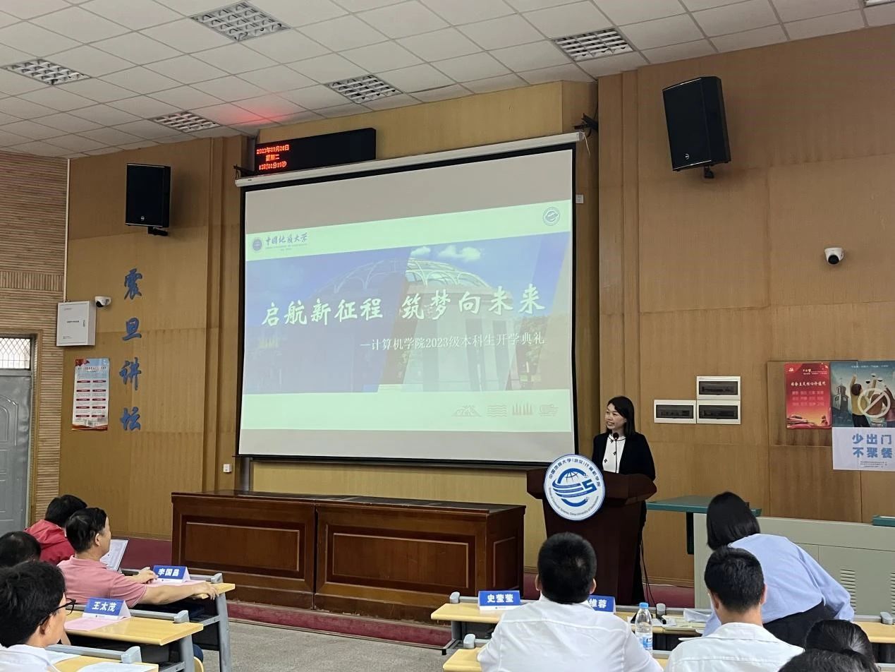 今年会网站党委副书记、院长张洪艳致辞。张院长首先代表全院师生对加入今年会网站的382位本科新生表示热烈的欢迎与衷心的祝贺,他对同学们选择加入计算机大家庭,成为“地大计科人”感到分外欣慰。他希望同学们在未来几年中为自己的选择砥砺耕耘、拔节生长、向阳而生,在地大、在今年会网站留下一生中最为深刻的年轮。同时,他向全体新生提出三点建议:一是要选择肩负使命,心怀国之大者。计科学子要深耕科研土壤,为国家掌握关键性核心技术贡献力量,让青春在实现民族使命中闪耀;二是要选择仰望天空,永攀知识高峰。计科学子要保持对知识的渴望,努力成长为具备计算思维、引领行业发展的交叉学科人才,用广阔的学科视野面对新的挑战;三是选择脚踏实地,练就过硬本领。计科学子要时刻与电脑和网络打交道,在电脑与网络间要学会拒绝诱惑,将时间用在了解行业发展最新前沿,了解市场需求驱动关键技术的突破。