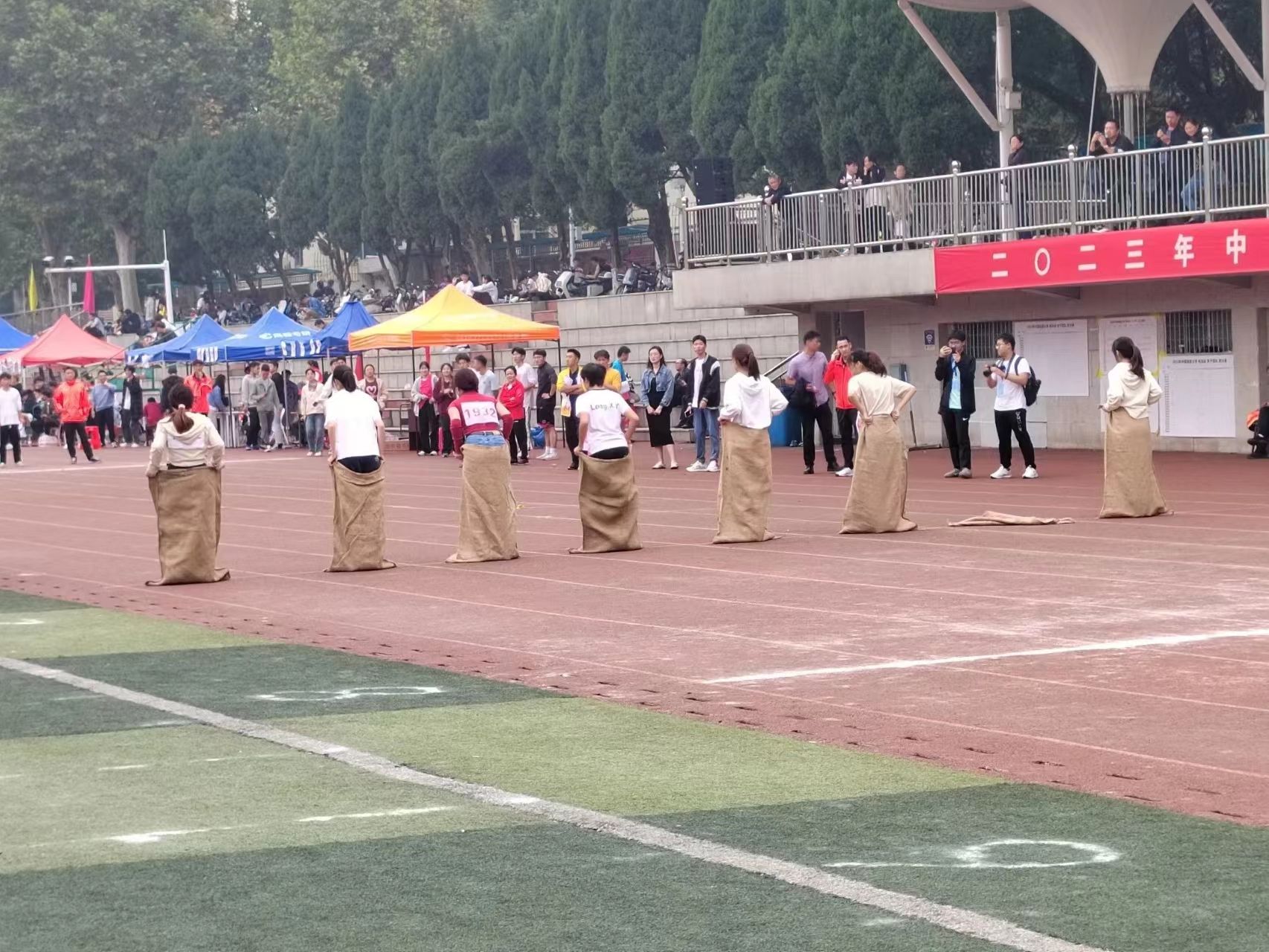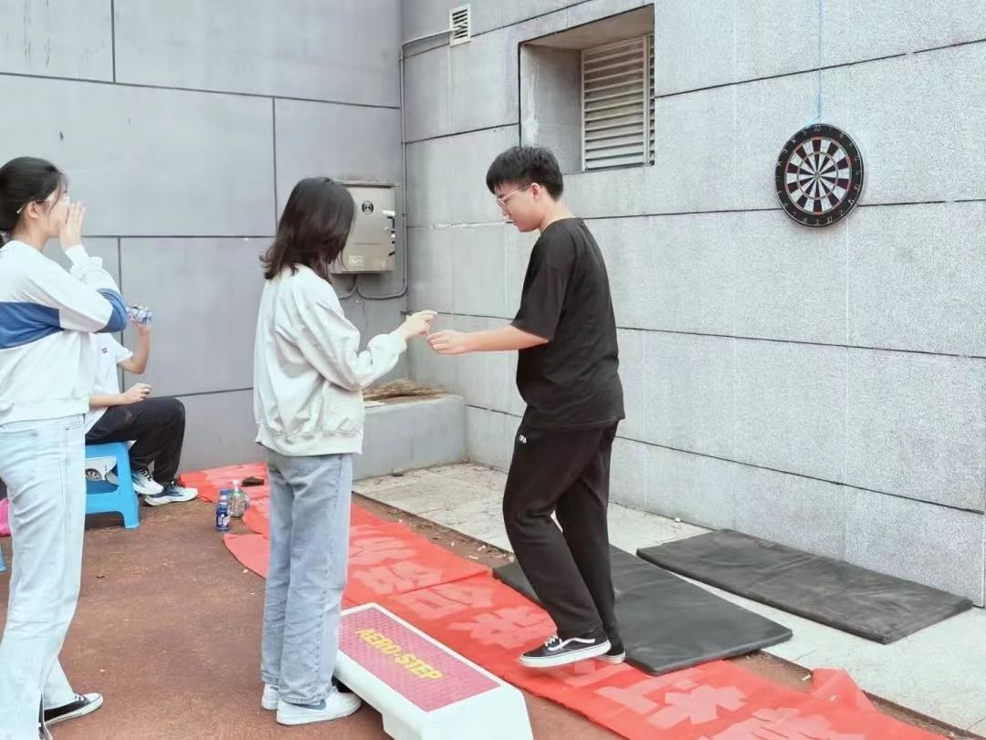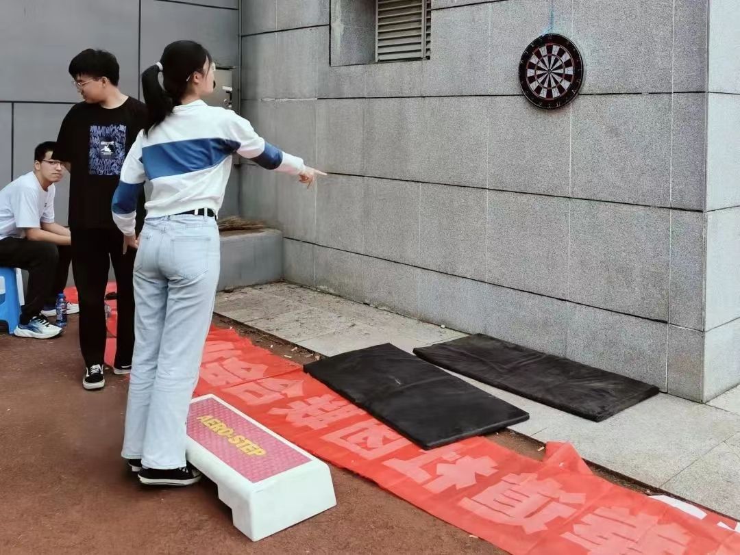除了竞技性极强的赛事,本次秋季运动会还开设了许多趣味项目,有袋鼠跳、掰手腕、掷飞镖等,在紧张的赛程中为我们带来了耳目一新的别样体验。其中,教职工组胡双海老师获得60米滚铁环第二名,男子乒乓球团体赛获得第三名的佳绩。