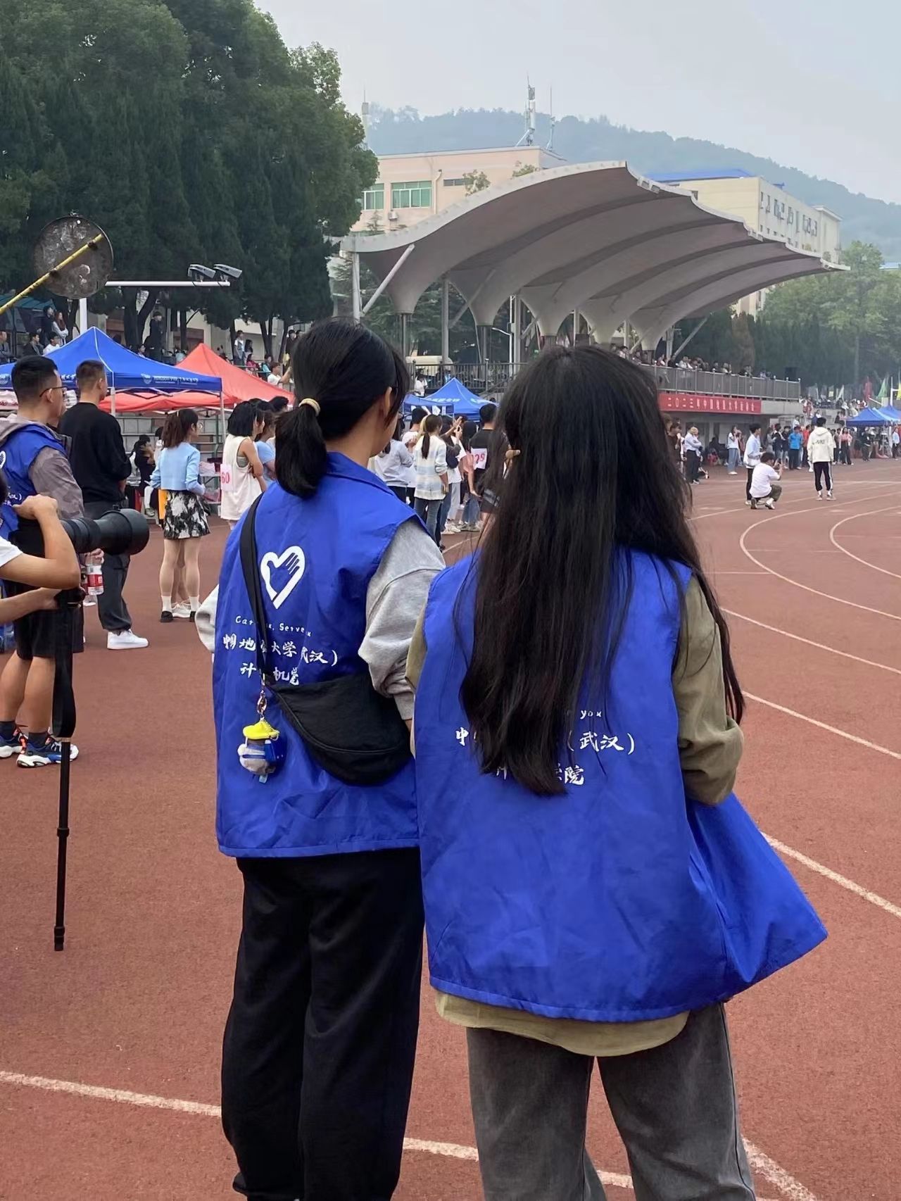 其实运动会除了运动员们对于更高更快更强的追逐,还有着许多动人的瞬间,或温情,或热烈,而你我皆是这阔大舞台上的一员。赛场上,记分员、志愿者、裁判员们忙碌奔走着。文体部的干事们维持着现场秩序,全媒体的同志们架着相机,捕捉下一个个生动的镜头。一场盛会从来不只一个焦点,是计科人地大人团结携手才营造了这样磅礴的赛事。