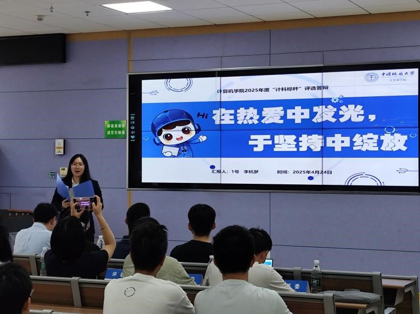 在答辩环节,参选者们各展长才。在线下答辩环节中,李杭梦、袁卓铭、李金诺、金汤悦、王昱博、郭嘉乐、卢耀七位同学讲述真挚、分享生动,展现了计算机学子在科研创新、社会实践、文体活动等方面的卓越风采;在线上部分中,明飞、郑诗语、田甜、叶辰勋、石京浩、李赟六位同学,通过精心录制的视频,展示了他们在学习科研、组织活动等方面的闪光点,彰显了计科学子朝气蓬勃、积极进取的精神风貌。