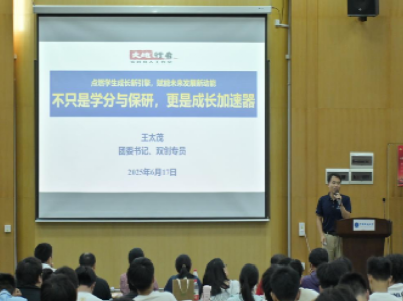 学院团委书记、双创专员王太茂老师聚焦大学生科技创新与社会实践指出,科创实践不仅是获取学分和助力保研的途径,更是个人成长的“加速器”。他重点推介了学院特色平台“大地行者”实践育人工作室,鼓励同学们积极参与“学生工作+科研竞赛+志愿服务+社会实践”的多元实践组合,实现育才与育德的统一。