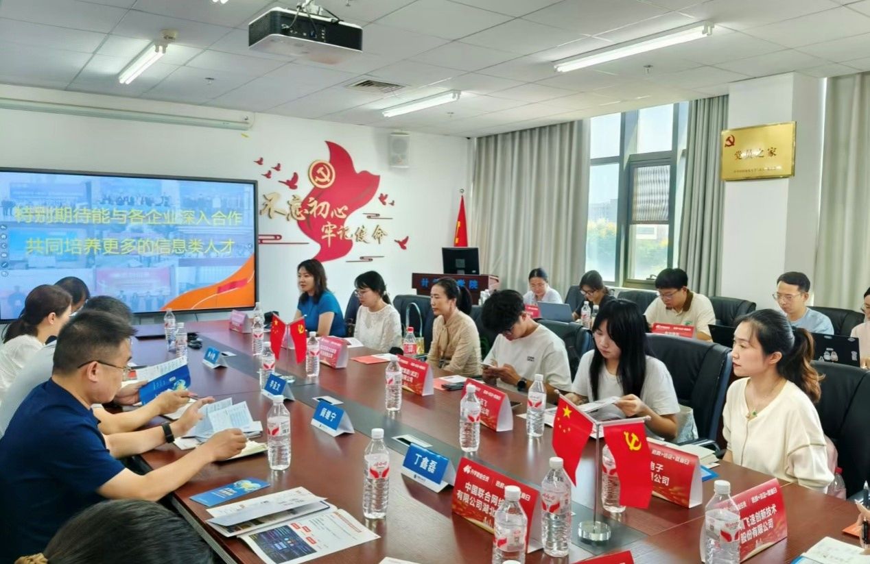 活动当日,学院在309会议室召开院企合作洽谈会。党委副书记林小艳,计算机科学与技术系主任熊慕舟,数据科学与大数据技术系主任阎继宁,软件工程系主任李圣文,2026届本科毕业生辅导员王太茂,研究生辅导员丁鑫磊与13家企业招聘主管共同参会。