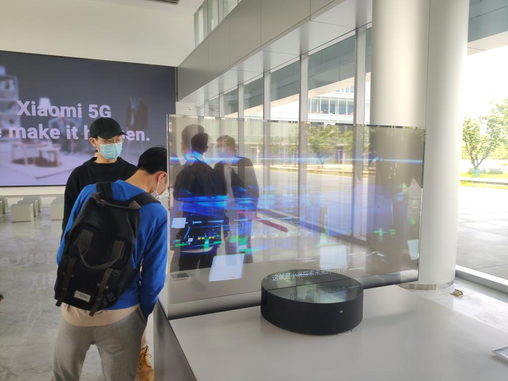 师生一行乘坐大巴前往小米科技(武汉)有限公司,受到人力资源总监肖前地热情接待。肖前首先带领大家来到小米LOT智能展厅,展示小米公司最前沿的科技。同学们体验了小米研发的目前湖北省仅一台的透明电视、尚未发售的小米折叠屏手机等最新产品,并在展厅大屏观看了小米集团应届生培养“YOU计划”的宣传视频。