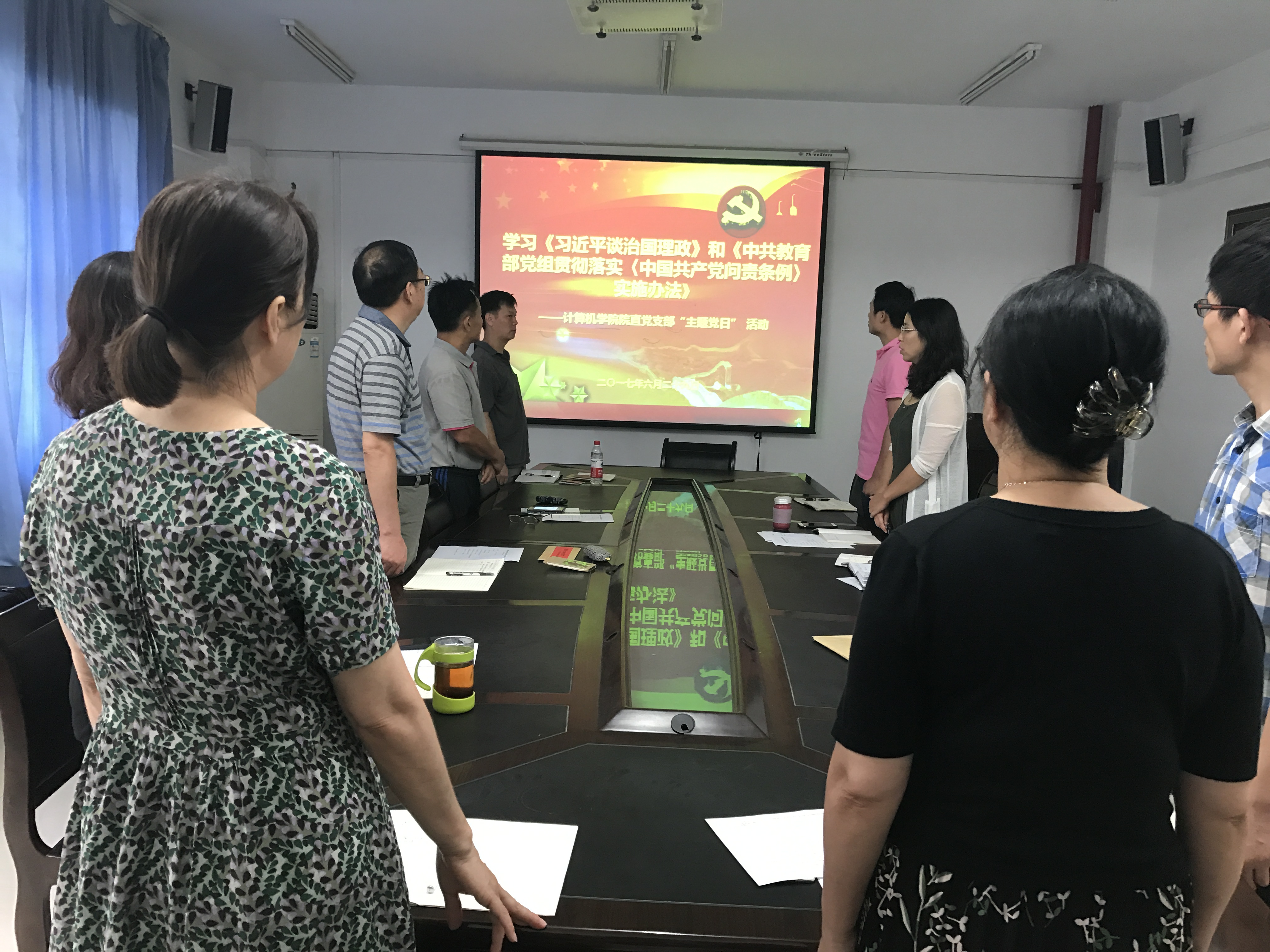 (通讯员:石剑峰)6月29日下午,今年会网站院直党支部举行“学习习近平同志治国理政思想基本观点”及“三个一工程困难学生捐赠”的主题党日活动。支部全体党员及新加入院直支部的彭堂树同志、石剑峰同志参加了本次学习活动.活动由院直党支部书记傅苑同志主持。