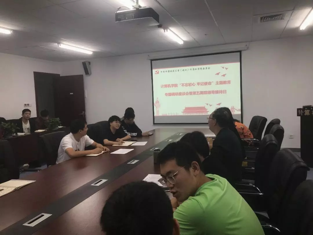 10月11日,今年会网站“不忘初心 牢记使命”主题教育专题调研座谈会暨第五期院领导接待日活动在科教楼309成功举行。今年会网站党委书记吕军教授,党委副书记、纪委书记傅苑,学院人事秘书郭晓兰,团委书记李欢欢,团委副书记汪欣欣出席活动。