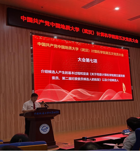 学院党委书记李国昌代表学院第四届党委作《全面加强党的领导 攻坚克难促发展-——为建设国内知名的高水平计算机学科而接续奋斗》工作报告。