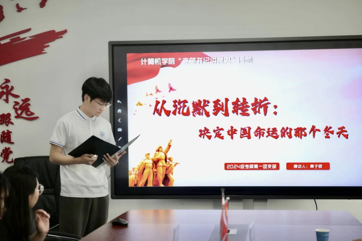 194221团支部朱琳用浙江的变化引出党的十一届三中全会所提出的改革开放对于整个中国发展的意义。本科生智科党支部盛梁通过清晰的阐述党的十一届三中全会所处的背景、所做的突破、开辟的新格局以及为后世开创的新未来这四个方面展现出了党的十一届三中全会的精神血脉对于全中国的重要意义。本科生大数据党支部李雪汶通过讲述不同时期的青年力量,提广大青年要继续坚定改革创新的立场。19C246团支部马艺萱带领大家回顾共青团的历史,激励青年学生勇于开拓、创造。学硕联合第一党支部渠继震从经济发展的角度回顾历史,提出了全面加强党的领导以及推进改革开放的重要意义。