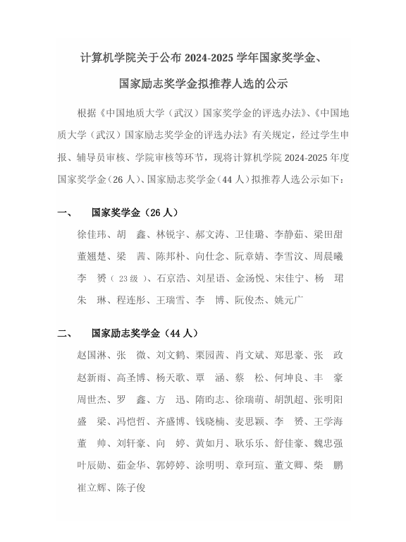 今年会网站关于公布2024-2025学年国家奖学金、国家励志奖学金拟推荐人选的公示
