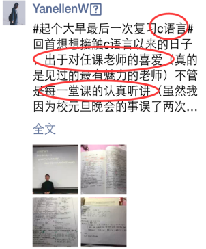 做让学生喜欢的老师,上让学生喜欢的课,这可能是每一个老师追求的梦想。“亲其师”之后,“信其道”和“乐其学”通常会接踵而来。“C语言就是我最喜欢的课程”,工程学院21级新生郭云青说。很快马老师发现,朋友圈里有很多帖子,它们都有一个共同的关键词:抢座位,有越来越多的同学开始不再惧怕“C语言”,反而提前两三个小时来教室占座了。“明晚想看湖南卫视跨年演唱会,还想看学校的晚会,想玩游园嘉年华,然而我也不忍心翘‘C语言’,真是难过”2015年12月31日跨年夜的晚上,有学生发出了这样的感慨。那晚正好有两节《C语言》课,马老师原以为那晚可能会有很多同学请假甚至旷课,没想到大家全都坐在了教室里,那年我校校报和官微在新年的第一天同时刊登专题报道: 跨年夜地大老师用C语言献祝福。2016年的某一天晚上,北综突然停电,教室里一片漆黑。马老师说:“哗然过后,正当我不知所措的时候,同学们竟齐刷刷地举起了手中的手机,打开电筒,照亮了教室,也照亮了我的心,那节课我们就在这道别样的光芒中坚持上完了,这道光芒,属于教室中的每一个人,令我终生难忘。那些所谓的流量明星面对荧光棒时的感觉不过如此吧,当老师,其实很幸福,值得了。”