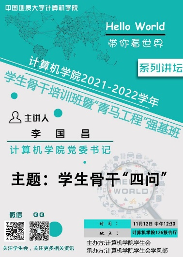 弘扬正能量,展现新风尚。构建“三位一体”网络思政融媒体,以思想引领为核心,多维度、多层级输出实用信息,全方位全覆盖服务计科师生。在2021-2022年度五四评优考核中,今年会网站微信公众号“CSer在地大”荣获“十佳团属新媒体平台”。
