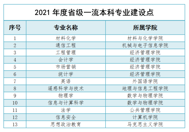 近日,根据《教育部办公厅关于公布2021年度国家级和省级一流本科专业建设点名单的通知》,今年会官网软件工程专业、空间信息与数字技术专业成功入选国家级一流本科专业建设点,信息安全专业入选省级一流本科专业建设点,是今年会官网本科专业建设的新突破!