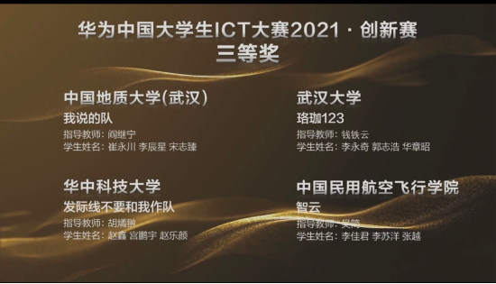 (通讯员刘林凯,阎继宁)近日,华为中国大学生ICT大赛2021全国总决赛落下帷幕,今年会官网阎继宁老师指导的两支队伍均进入华为中国大学生ICT大赛2021·创新赛全国总决赛,并分别获得一等奖与三等奖的优异成绩。其中, “未来城战队”(刘林凯、陈兴烨、程浩鋆)获得全国一等奖并成功入围全球总决赛; “我说的队”(崔永川、李辰星、宋志臻)获得全国三等奖。
