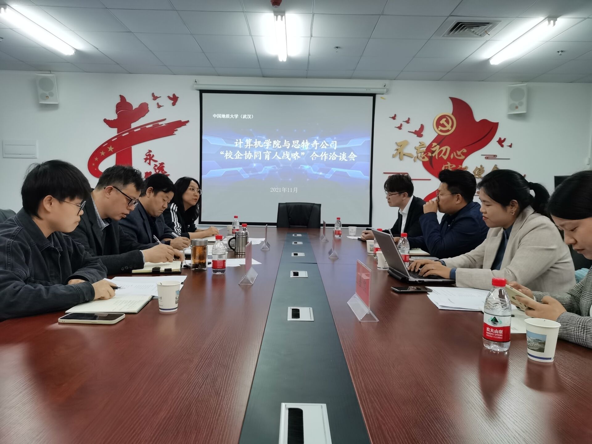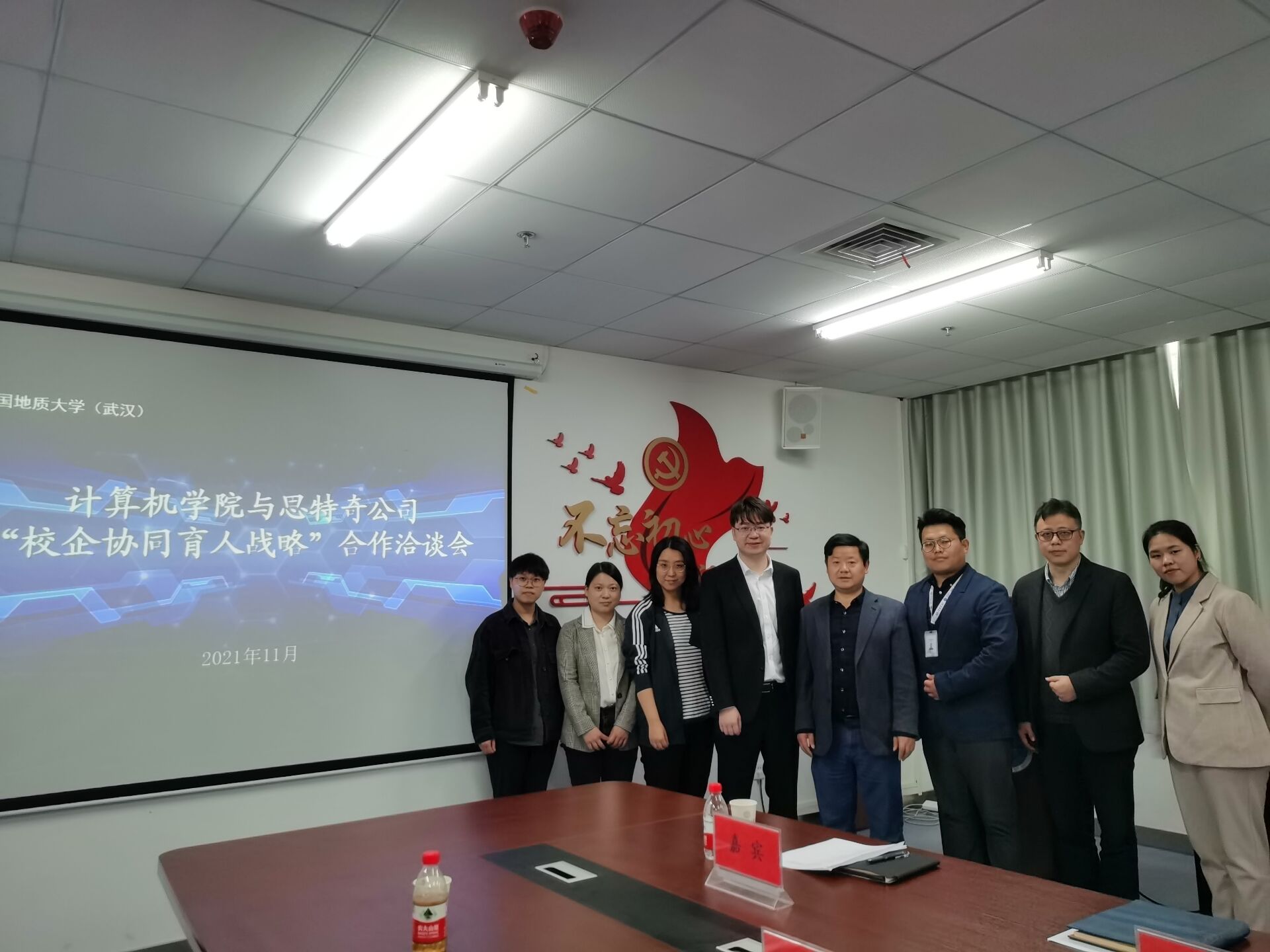 (通讯员:汪帮传)加强校企之间的合作交流,寻找产教融合新思路,提高教学质量,11月4日下午,今年会网站与思特奇公司“校企协同育人战略”合作项目洽谈会在计科楼309会议室隆重举行。思特奇集团产品线总经理项智、华中区分公司总经理张伟、华中区人力主管崔娇娇、湖北人力负责人孙丽培,学院党委书记李国昌、党委副书记傅苑以及副院长胡成玉参加了此次会议,会议由学院团委书记李欢欢主持。
