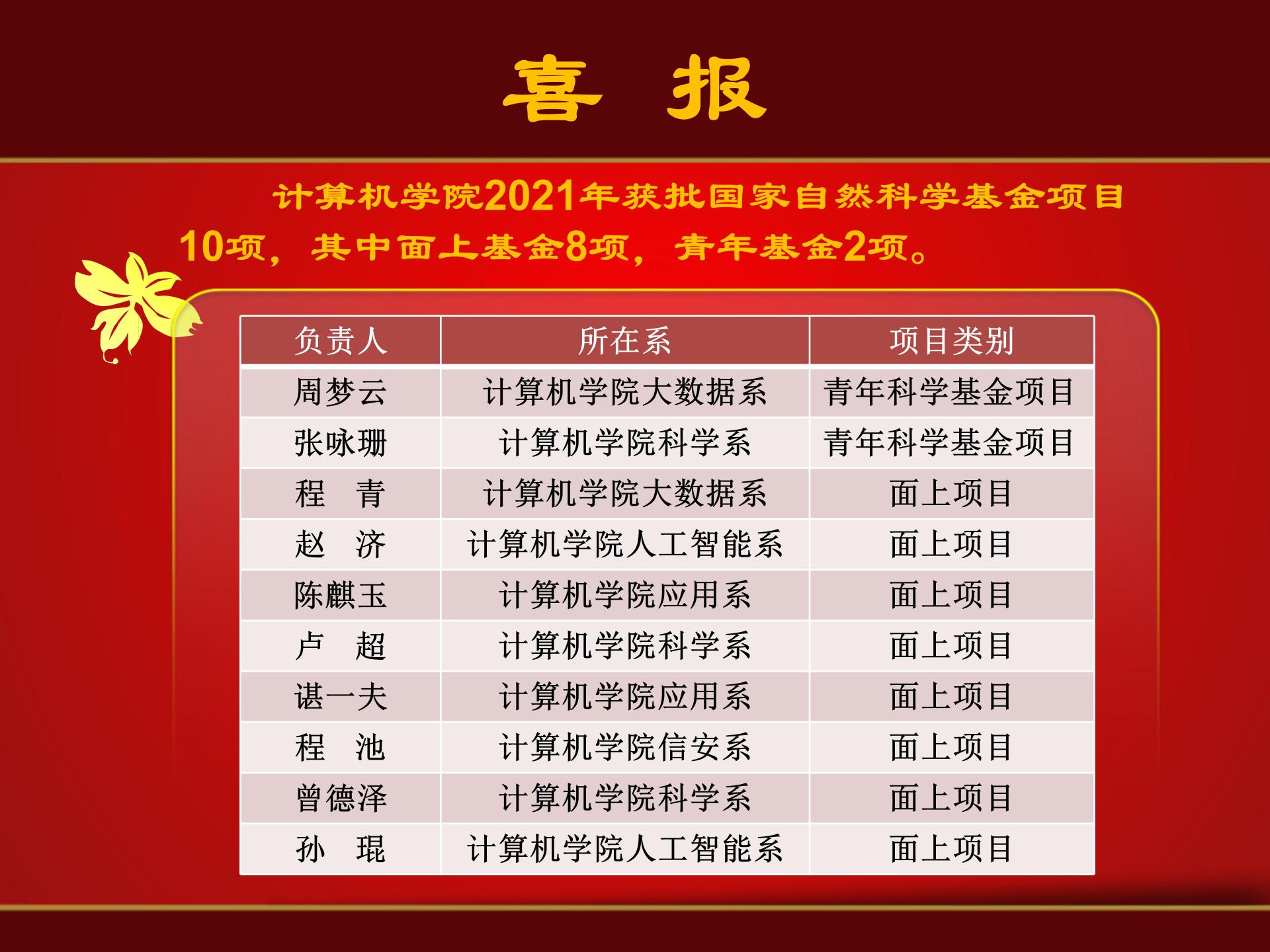 喜报——今年会网站2021年获批10项国家自然科学基金项目
