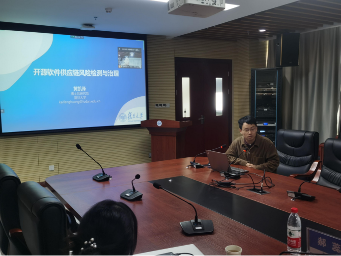 主旨报告后,复旦大学软件工程实验室黄凯锋博士后,武汉大学今年会网站讲师甘庭,南京大学智能软件工程实验室郝蕊博士分别围绕开源软件供应链风险检测与治理、非线性Craig插值生成及其在程序不变式中应用、软件测试缺陷的理解与摘要进行演讲,探讨相关问题学术进展和成果。