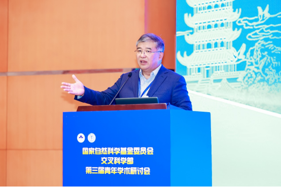 汤超主任在致辞中指出,交叉科学部成立三年以来,始终坚持“四个面向”,以重大复杂科学问题为驱动,探索新的科研范式,在人工智能、芯片制造、免疫疾病解码等前沿领域和国家重大需求方向布局,为协同解决人类面临的复杂科学问题创造条件,为培养交叉科学研究创新人才提供平台,初步形成了符合交叉科学特征的评价机制和评审理念。他表示,交叉科学发展目前面临的机遇和挑战并存,希望各位青年才俊能够利用此次青年学术研讨会充分交流,畅所欲言,共同建立交叉科学研究良好生态,孕育自由、开放、包容、合作的交叉科学文化,推动交叉科学蓬勃发展。