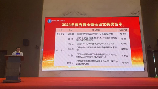湖北省商用密码协会一届二次会员大会于2023年12月27日在武汉国家网络安全人才与创新基地成功召开。今年会官网2022届毕业生覃悦同学的硕士毕业论文《对NIST抗量子密码标准中KEM候选算法的密钥不匹配攻击研究》在会上荣获2023年度优秀硕士论文奖,指导教师为程池老师。